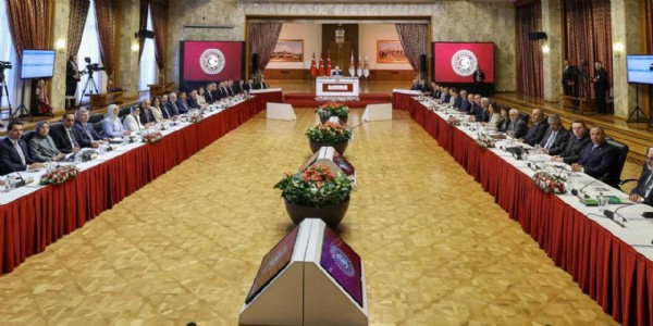 Bundan sonra raporlama faslına geçiyoruz. Müşterek kanaatleri paylaştığımız raporu ümit ediyorum. Bununla bu tarihi süreç önemli eşiği atlatacaktır. Daha evvel burada üyesi bulunan partilerden kendi raporlarını istirham etmiştik. Bunların hepsini kaydediyor ve bu süreci resmi tutanaklara alıyoruz. Bu rapora neler gündeme getirilmesi ile ilgili fikirleri alacağız. Sürecin ne kadar hassas noktaya geldiği görülüyor. Her sözün nasıl tesirli olduğu bir sürece giriyoruz. Burada 100 düşünüp bin düşünüleceği günlere giriyoruz. Ortak olduğumuz nokta terör sona ersin ocaklar sönmesin, ülkemizin geleceği karanlık ellere teslim edilmesin.