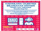 Teknosa ' dan yapılan açıklamada , Teknosa ' nın " Kadın için Teknoloji " felsefesi ile hayata geçirdiği Ücretsiz Bilgisayar Eğitimi Projesi ' nin , Birleşmiş Miletler Kalkınma Programı , Devlet Planlama Teşkilatı , Microsoft ve Habitat için Gençlik Derneği işbirliğiyle Gaziantepli kadınlarla buluşacağı belirtildi . Mayıs 2007 ' den bu yana devam eden eğitimlerin binlerce kadını bilgisayar ile tanıştırdığı , 1 ay boyunca devam edecek eğitimin , tüm kadınların katılımına açık olacağı , bilgisayarda yazı yazma gibi temel
