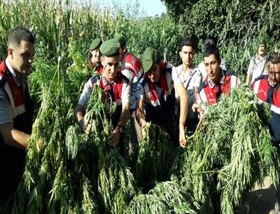 Jandarmanın yaptığı istihbarat çalışmasının ardından yapılan ani baskınla ortaya çıkarılan Hint keneviri, yaklaşık 3 metre uzunluğundaki mısırların ekili olduğu tarlanın ortasında yer alıyordu. Çevresindeki mısırlardan dolayı görülmesi neredeyse imkansız olan yüklü miktarda Hint keneviri, jandarma tarafından ele geçirildi.