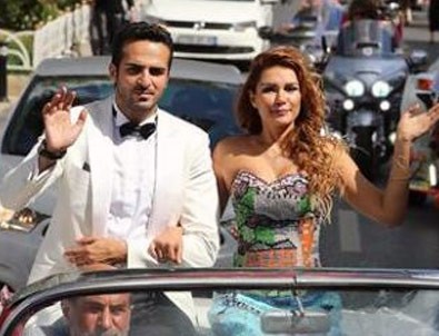 Tuba Altıntop giydiği elbiseyle gelin arabasına binemeyince damat kollarına girerek yardımcı oldu.