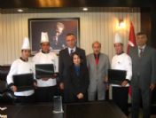 Mesleki ve Teknik Eğitim Okul ve kurumları arasında düzenlenen 'Proje Tabanlı Beceri Yarışması'nda Çuplara isimli balık yemeği ile 'Türkiye Birincisi' olan Manavgat Otelcilik ve Turizm Meslek Lisesi öğrencileri, Manavgat Kaymakamı Hacı İbrahim Türkoğlu tarafından laptop ile ödüllendirildi