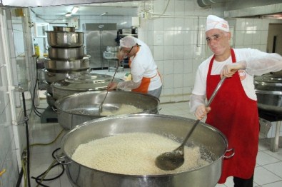Üsküdar Belediyesi’ne ait aş evlerinde tonlarca pirinç ve et aşçılar tarafından dev kazanlarda pişirildi.