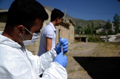 Elazığ Veteriner Kontrol Enstitüsüne gönderilmek üzere köpeklerden numune alındığı öğrenildi.