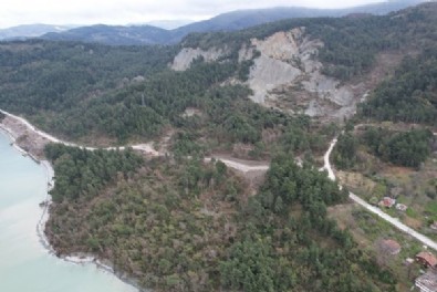 Kastamonu'da Abana-İnebolu karayolunun Bozkurt ilçesine bağlı İnceyazı köyü mevkiinde karların erimesi ve yağmurun da yağması sonucu dağın büyük bir bölümü koparak kaydı.