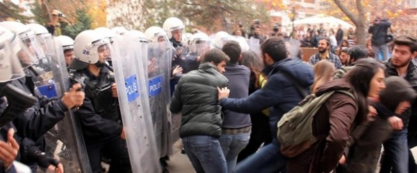 Eskişehir'de, Anadolu Üniversitesinde düzenlenen sempozyuma Vali Güngör Azim Tuna'nın katılmasını protesto eden gruba polis müdahale etti.
