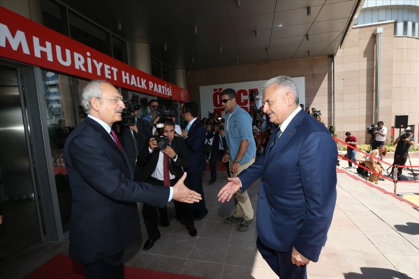Başbakan Binali Yıldırım, Kemal Kılıçdaroğlu ile görüşmek üzere CHP Genel Merkezi'ne geldi. Yıldırım Başbakan olduktan sonra ilk kez genel merkez binasında CHP'yi ziyaret ediyor. Binali Yıldırım saat 14:08'de CHP Genel Merkezi'ne giriş yaptı.