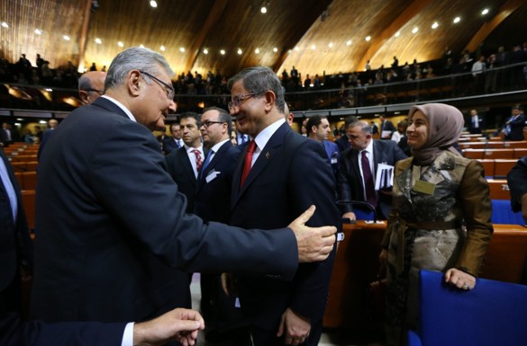 CHP Antalya Milletvekili Deniz Baykal, Başbakan Ahmet Davutoğlu'nun Avrupa Konseyi Parlamenterler Meclisi Genel Kurulu'nda yaptığı konuşmanın ardından yanına giderek el sıkıştı. Baykal, Davutoğlu'na 'hoş geldiniz' dediğini söyledi.