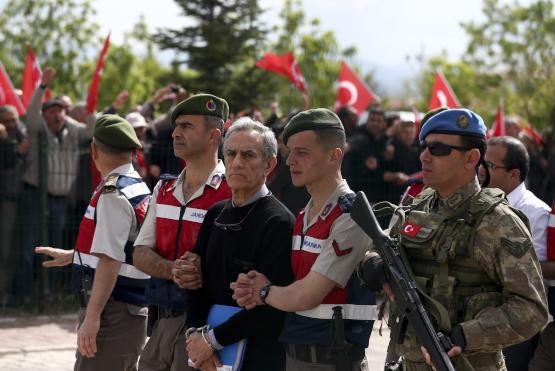 ÖZTÜRK VE DİĞER DARBECİLERİN MAHKEMEYE GİRİŞİNDE URGANLI PROTESTO