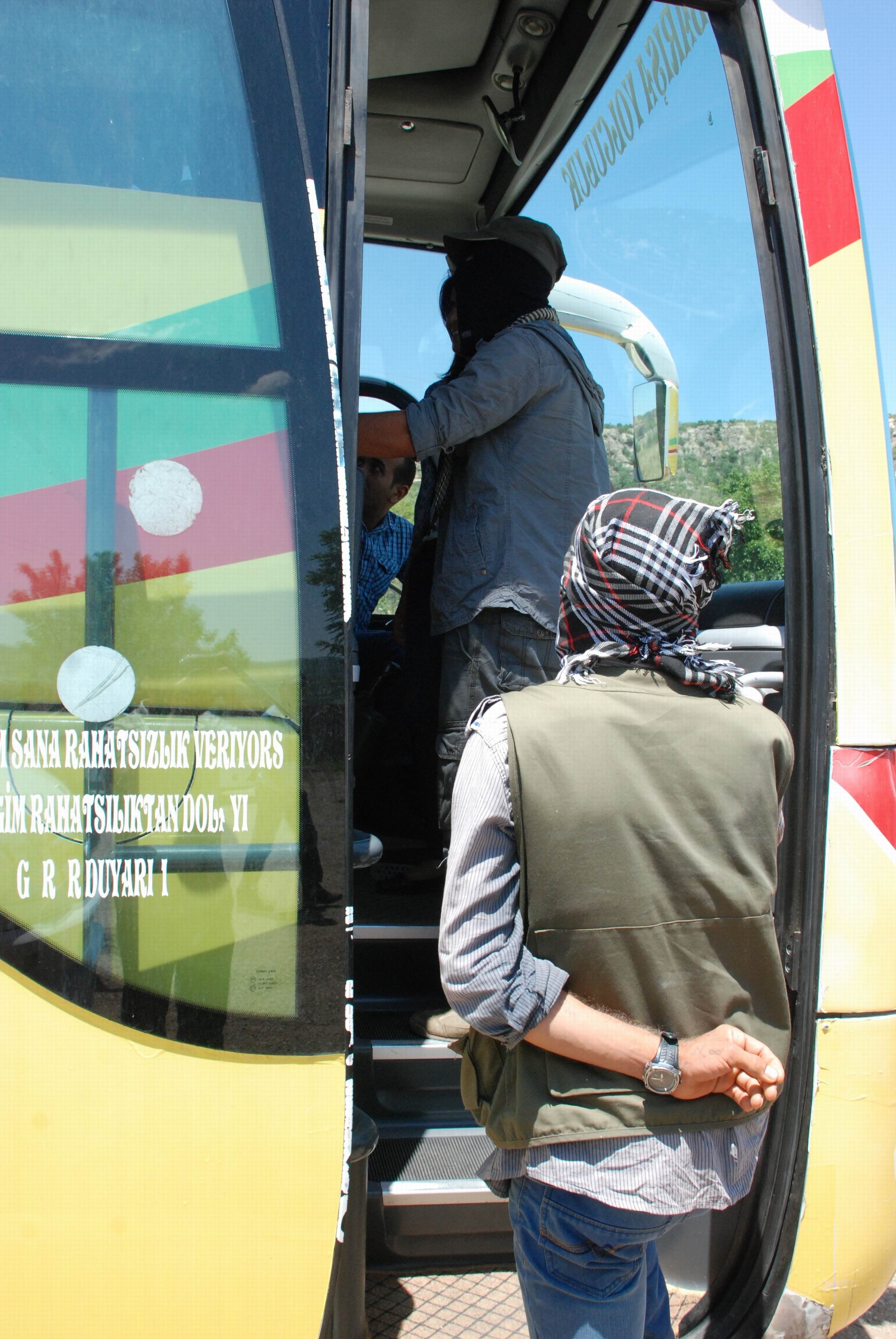 Araçları durduran yüzleri maskeli grup, araçlarda örgüt propagandası yaptı. Bir süre örgüt propagandası yapan yüzleri maskeli grup daha sonra milletvekilleri ve beraberindeki heyeti bıraktı.