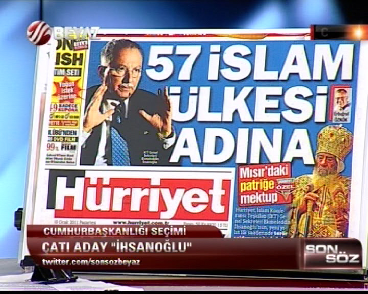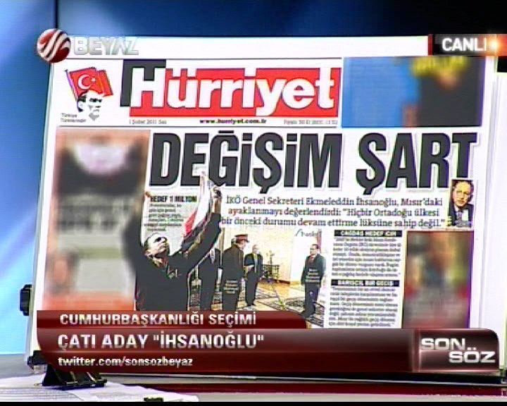 Hürriyet Gazetesi'nin özellikle manşetten Ekmeleddin İhsanoğlu'nu ön plana çıkartmaya başladığını ve devamlı empoze ederek şişirdiğini belirten Gökçek, “1 Şubat 2011 tarihinde Ekmeleddin İhsanoğlu manşet olmuş. Bir İslam konferansı başkanı böyle sürmanşet ediliyor.” dedi.