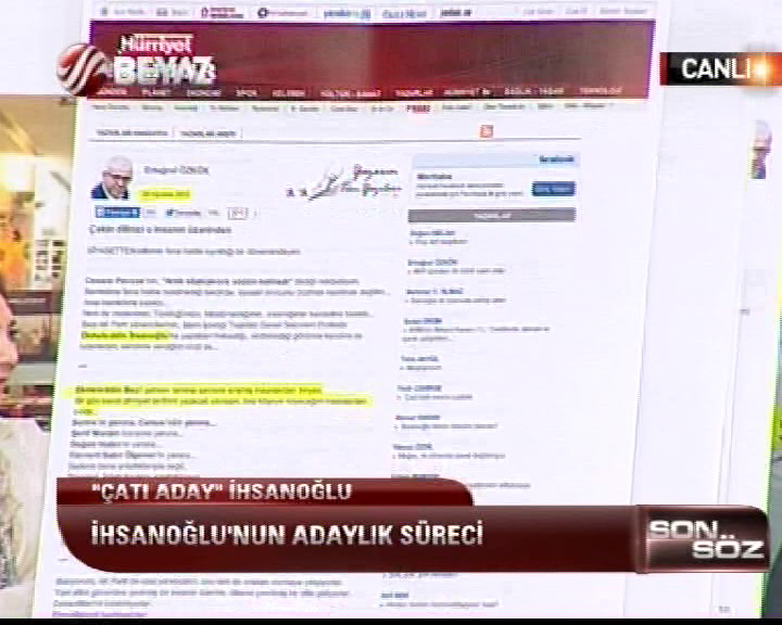 Ertuğrul Özkök'ün Ekmeleddin İhsanoğlu ile ilgili 5 tane yazısını bulduğunu belirten Gökçek o belgeleri de tek tek Canlı yayında izleyiciye sundu.
