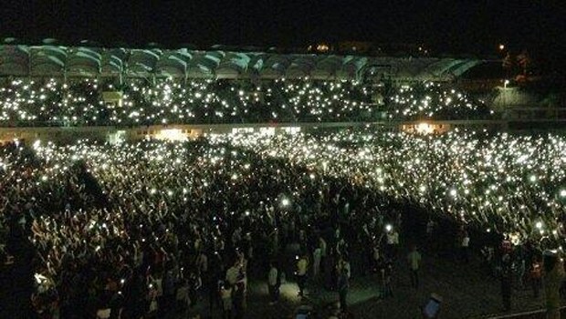 Soma'da ölen madenciler için söyledi. Ünlü şarkıcı şarkısına başlarken 'Herkes onlar için bir ışık yaksın' dedi. Işıkların yakıldığı anlarda ortaya bu görüntü çıktı.