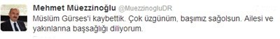 Mehmet Müezzinoğlu: Müslüm Gürses'i kaybettik. Çok üzgünüm, başımız sağolsun. Ailesi ve yakınlarına başsağlığı diliyorum.