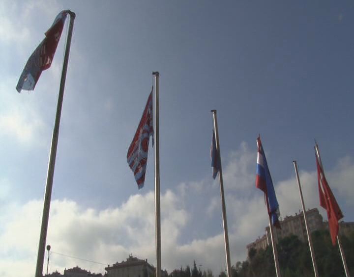 Taraftarlar, TFF önündeki Türk bayrağı hariç tüm bayrakları indirdiler, yerlerine Trabzonspor bayrağı astılar.