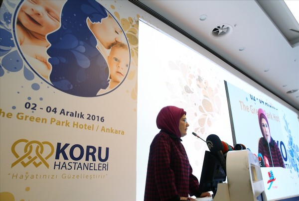 Emine Erdoğan, yaptığı konuşmada doğum sürecinin çok özel bir süreç olduğunu, sezaryen ile doğumun tüm dünyada alarm verici boyutlara ulaştığını vurgulayarak, “Sezaryen, gerçek sebeplerle ve doğru zamanda yapıldığında elbette hayat kurtarıcı bir fonksiyon üstlenebilir. Fakat ne yazık ki artık bir kurtarma ameliyatı olmaktan çıkıp, tercih edilebilir bir doğum şekli hâlini almıştır. Yapılan tüm bilimsel çalışmalar, normal doğumun daha sağlıklı olduğunu gösteriyor” dedi.