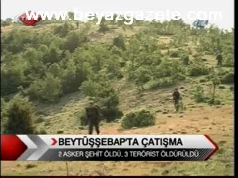 Şırnak Beytüşşebap'ta, teröristler önce mayın patlattı ardından güvermit güçlerine ateş açtı. 2 uzman erbaş şehit oldu, 3'üde yaralandı. Çatışmada 3 terörist öldürüldü. Teröristlerden birinin bölücü terör örgütünün elebaşılarından olduğu belirtiliyor.