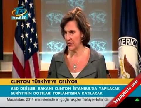 ABD Dışişleri Bakanlığı Sözcüsü Victoria Nuland, günlük basın brifinginde yaptığı açıklamada, Türkiye'nin 1 Nisan'da geniş katılımlı Suriye'nin Dostları Toplantısı'na ev sahipliği yapacağını hatırlatarak, ABD Dışişleri Bakanı Clinton'ın da bu toplantıya katılacağını bildirdi.