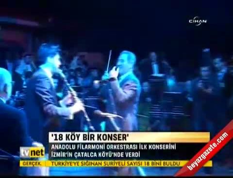 Kültür ve Turizm Bakanı Ertuğrul Günay, konserin açılış parçasında şeflik yaptı. Oldukça keyifli olduğu görülen Bakan Günay, mikrofunu alarak, 'Ben Seni Sevdiğimi Dünyalara Bildirdim' türküsünün bir bölümünü seslendirdi. Anadolu Filarmoni Orkestrası, geçen hafta kuruluş kararnamesinin Resmi Gazete'de yayımlanmasının ardından ilk konserini Menderes ilçesine bağlı Çatalca köyünde verdi. Konsere Kültür ve Turizm Bakanı Ertuğrul Günay da katıldı.