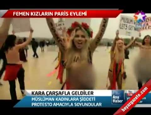 Türkiye dâhil birçok ülkede yaptıkları çıplak eylemlerle hem basının hem de kamuoyunun dikkatini çekmeyi başaran FEMEN aktivistleri, dün Paris’in simgesi Eyfel Kulesi’ni arkalarına alarak ‘İslam karşıtı’ bir eyleme imza attı.