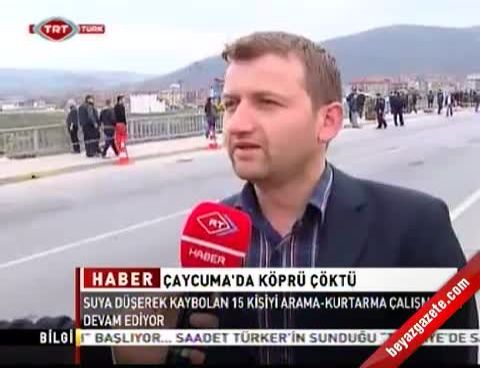 Zonguldak'ın Çaycuma ilçesinde Filyos çayı üzerinde bulunan köprü çöktü. Köprü üzerinde bulunan bir minibüs ve bir otomobil çaya düştü. Olayda kaybolan 15 kişiyi arama çalışmalarına devam ediliyor. Çalışma ve Sosyal Güvenlik Bakanı Faruk Çelik yaptığı açıklamada, tüm imkanları seferber ettiklerini söyledi.