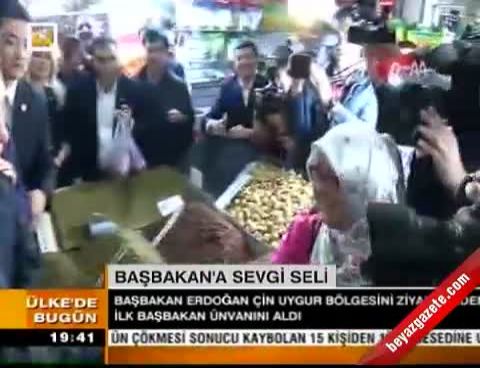 Bu arada Erdoğan'ı Büyük Pazar'a gelişinde Uygur Türkleri büyük bir sevgi gösterisiyle karşıladı. Başbakan Erdoğan, pazarda Uygur Türkleri ile sohbet etti, meyve kurusu tattı ve satın aldı.