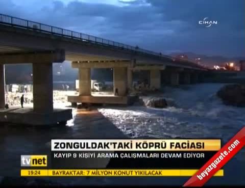 Zonguldak’ın Çaycuma ilçesinde yıkılan köprü nedeniyle Filyos Çayı'nda kaybolan 9 kişiyi arama kurtarma çalışmaları devam ediyor.
