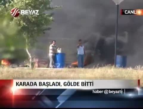 Adana'da tezgahlarına el konulmasına tepki gösterip yolu trafiğe kapatıp çöp konteynerini ateşe veren bir grup seyyar satıcı, takviye polis ekiplerinin geldiğini görünce Seyhan Baraj Gölü'nde botla kaçmak istedi.