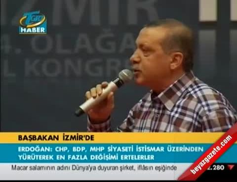 Başbakan Erdoğan, muhalefet partilerini ise ''Bugün CHP de MHP de BDP de temsil ettikleri kitleleri korkutarak onlara sanal tehditler göstererek, siyaseti istismar üzerinden yürüterek en fazla değişimi ertelerler, başka bir şey yapamazlar. Değişime direnmek, değişimi geciktirir ama değişimi engelleyemez. Bizim değişimden anladığımız ileri demokrasidir'' sözleriyle eleştirdi.