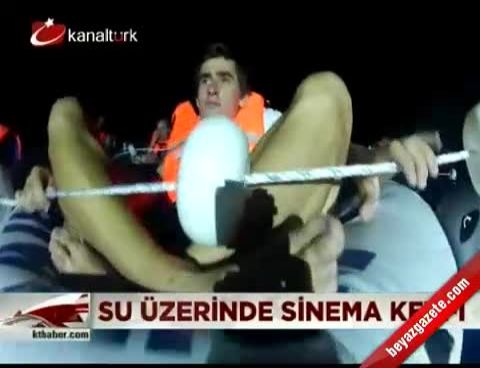 Antalya’da, özel bir GSM operatörünün düzenlediği etkinlikte, yaklaşık 150 kişi denizin ortasında simitlerin üzerinde ‘Jaws-1’ adlı sinema filmini izledi.