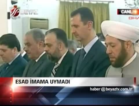 Suriye televizyonunun canlı yayınla verdiği bayram namazı sırasında Esed'ın, imamdan önce selam vermesi kameralara yansıdı. Görüntüleri Esed karşıtı haberleriyle bilinen El Arabiya televizyonu yayınlandı.