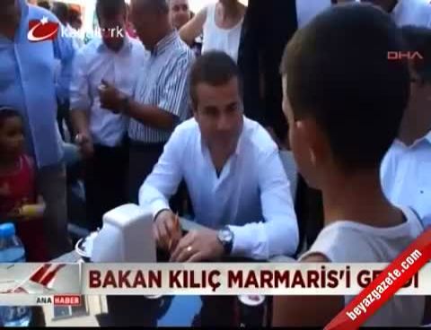 Cuma Namazını Marmaris Yeni Camii'de kılan Bakan Kılıç ardından Kapalı Çarşı Esnafını tek tek dolaşarak esnaf ziyaretinde bulundu. Vatandaşlar Bakan Kılıç'la fotoğraf çektirmek için birbirleriyle yarışırken özellikle küçük çocuklar Bakan Kılıç'a büyük ilgi gösterdi. Gençlik ve Spor Bakanı Kılıç, daha sonra İçmeler beldesine giderek, futbol sahalarında incelemelerde bulundu.