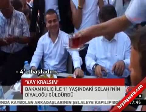 Bakan Kılıç'ın yanına gelen Selahi isimli çocuk Bakan Kılıç'a ne bakanısınız sorusunu yöneltti. Çevredeki vatandaşların küçük çocuğa Gençlik ve Spor Bakanımız yanıtını vermesi üzerine küçük çocuk Bakan Kılıç'a sarılarak 'Kralsın, akşam bize gelirmisin ' dedi.