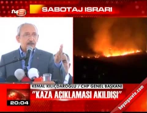 CHP Genel Başkanı Kemal Kılıçdaroğlu, Afyonkarahisar'daki patlamaya ilişkin, ''Eğer o bombanın pimi çekilmişse meraktan değil, kasıttan pimi çekilmiştir. Bu mühimmat deposunu gözeten kameralar var mıydı yok muydu acaba? Bunu da öğrenmek isteriz, öğrenmeye hakkımız var bizim'' dedi.
