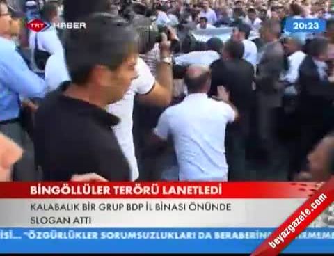Son günlerde yaşanan olaylara tepki göstermek isteyen vatandaşların, ellerindeki taş, sopa ve sandalye gibi cisimlerle saldırdıkları BDP binasında bulunan partililer de kalabalığa aynı şekilde karşılık verdi. Bir anda ortalık savaş alanına dönerken, bölgeye sevk edilen yüzlerce polis de kalabalığa müdahale etti.