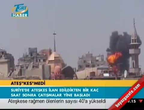 Öte yandan Suriye İnsan Hakları Gözlemevi, Suriye'deki ateşkesin ihlal edilerek Esad güçleri ve silahlı isyancılara arasında çatışma çıktığını öne sürdü. Bu çatışmalar, haberin doğrulanması durumunda ateşkesin ilk ihlali anlamına gelecek.