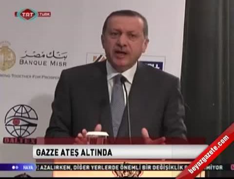 Mısır'da yapılan tüm anlaşmalara rağmen tarihinde olduğu gibi, bu ateşkes anlaşmasını da bozmak suretiyle Gazze'ye füzeler atan İsrail'in buna karşılık Gazze'den atılan roketleri bahane ettiğini ifade eden Erdoğan, İsrail'in 3 ölüsünü 300, 3 bin, 50 Filistinliyi ise 5 gösterdiğini söyledi. 500-600 yaralıyı hiç saydığını, yerle yeksan edilen Gazze'yi görmezden geldiğini kaydeden Erdoğan, şöyle devam etti: