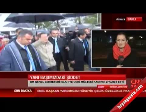 Irak’taki temaslarını tamamladıktan sonra Gaziantep’e gelen BM Genel Sekreteri Ban Ki-moon, Suriyeli sığınmacıların misafir edildikleri kampları ziyaret ettikten sonra üst düzey görüşmelerde bulunmak üzere Ankara’ya geldi. Ban Ki-moon’u taşıyan uçak Ankara Esenboğa Havaalanı’na 17.30’da indi. Ban Ki-moon, Cumhurbaşkanı Abdullah Gül ve Başbakan Recep Tayyip Erdoğan ile görüşmek üzere havaalanından ayrıldı .