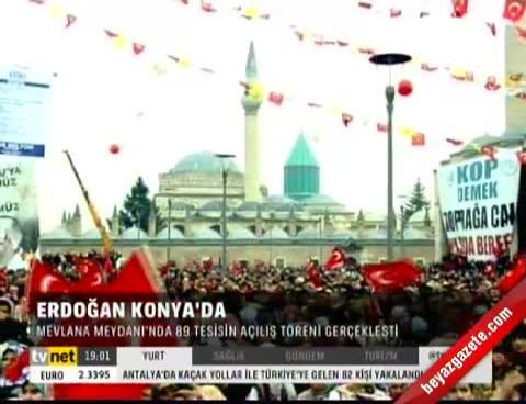 Başbakan Recep Tayyip Erdoğan, Konya Mevlana Meydanı'nda düzenlenen, aralarında Mavi Tünel ve Bağbaşı Barajı'nın da bulunduğu yatırımların toplu açılış töreninde konuştu.