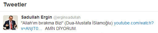 Bu arada Fethullah Gülen'in duası siyasette de yeni bir akım başlatacağa benziyor. Bu kez dua hükümet cephesinden Adalet Bakanı Sadullah Ergin'den geldi;