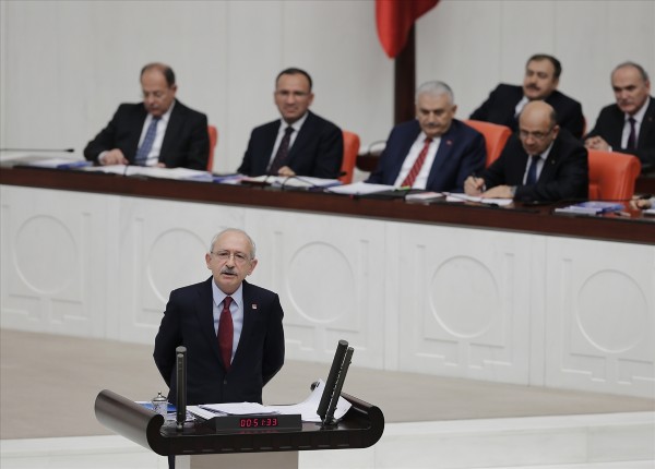 CHP adına söz alan Genel Başkan Kılıçdaroğlu oldu. Kılıçdaroğlu'nun gündeminde Yunanistan'da yaşanan Lozan tartışması ve Ataşehir Belediye Başkanı Battal İlgezdi'nin görevinden uzaklaştırılması vardı. Kılıçdaroğlu, ''Sayın Cumhurbaşkanı Yunanistan'a gitti dostluk ilişkilerinin gelişmesinde yarar vardır. Orada Lozan tartışma konusu yapıldı. Sayın Erdoğan'a sormak istiyorum hangi gerekçe ile Lozan'ı tartışmayı açıyorsun Lozan'ı tartışmaya açmak için önce üniversite diplomanı bana göster. Benim sınırlarımı gidersin nasıl başka bir ülkede tartışma malzemesi yaparsın? Orada niye işgal altındaki 18 adadan neden söz etmedin? Lozan'ın 12. ve15. maddeleri açıkça ihlal edilmiştir.'' dedi.